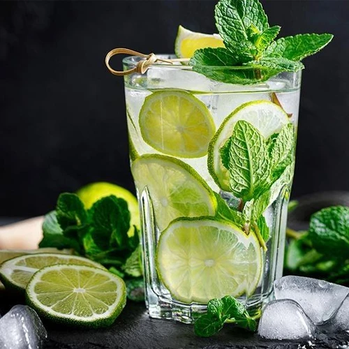 Rum, limão, xarope de açúcar, hortelã e água c/ gás